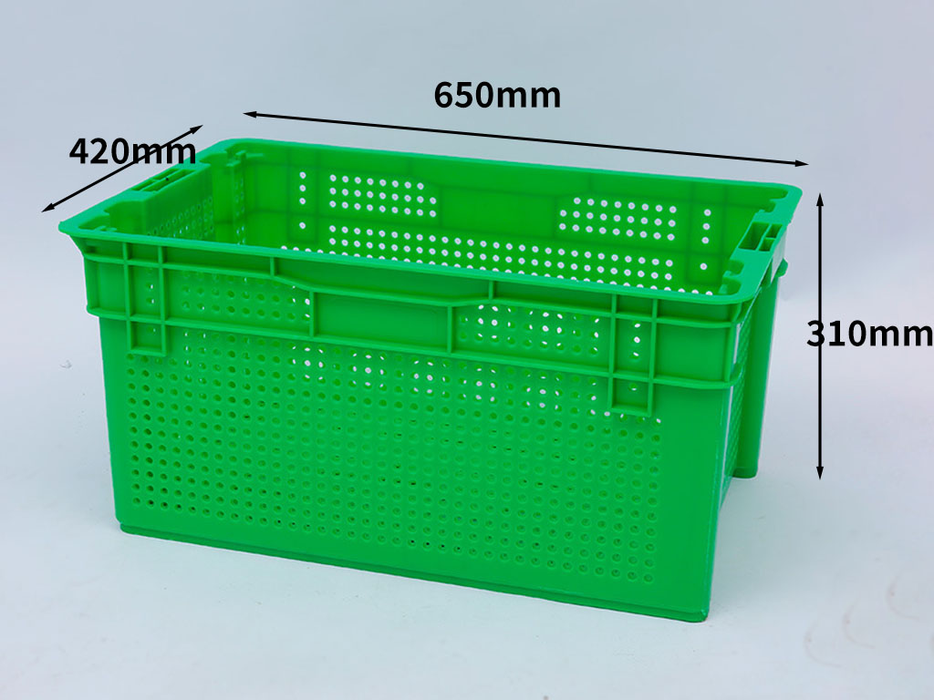 Same-model crates nest directly, greatly reducing storage and return volume; ideal for return loads after sorting and temporary in-warehouse storage. HDPE injection molded, impact-resistant and easy to clean.